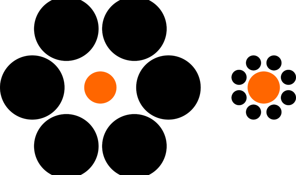 최종 목표 주변에 작은 목표를 둠으로써 최종 목표가 더 커 보이거나 더 잘 보이게 되는 현상은 에빙하우스 착시(Ebbinghaus illusion)라는 것에서 극명하게 드러난다. 가운데 원 주변에 그 원보다 큰 원들이 있을 때보다 작은 원들이 있을 때 더 커 보이는 이 현상은 골프 수행에 관련된 연구에서 그 실용성이 검증되기도 했다. 즉 골프 퍼팅을 할 때, 홀 주변에 더 큰 원들을 배치할 때보다 작은 원들을 배치할 때가 실제로 홀이 더 커보였을 뿐 아니라, 홀에 공을 집어넣을 확률도 증가한 것이다[2].