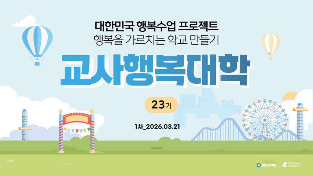 “대한민국 행복수업 프로젝트: 행복을 가르치는 학교 만들기. 입학을 진심으로 환영합니다!”