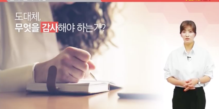 제목: 감사하는 습관,감사일기 작성 방법-하루 10분, 작은 습관의 위대한 변화,이민영 https://youtu.be/1-8O1NSJrMM 좋지 않은 상황 속에서도 행복을 느끼는 사람들이 있다. 바로 감사함을 느끼는 사람들이다. MBC에서 방영한 ‘행복에 이르는 10단계’에서 진행한 실험에서 400여 명을 대상으로 하루에 3가지씩 감사함을 기록하게 했다. 그랬더니 이 사람들의 행복감이 증가했다. 감사함은 우리를 행복하게 만든다. 소소하게 일상 속에서 행복을 경험하고 싶다면, 감사 일기를 쓰는 것부터 시작하자.