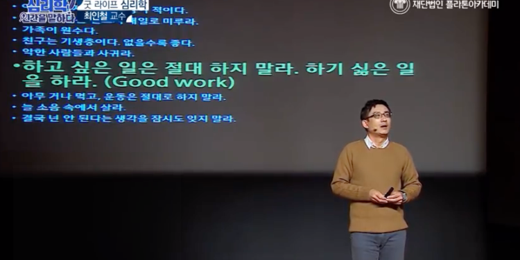 제목: 굿 라이프 심리학 (최인철 교수) https://youtu.be/QkqfmP0rHzk 재단법인 플라톤 아카데미와 한국심리학회 그리고 서울대학교 행복연구센터는 공동으로 「심리학, 인간을 말하다」라는 강연을 기획했다. 이 영상은 강연 중 최인철 교수의 부분을 편집한 영상이다. 행복한 삶을 살기 위해 우리가 해야 할 것은 무엇일까? 강연의 주제는 ‘굿 라이프(Good Life)'이다. 최인철 교수는 ’굿 라이프‘를 이야기하기 위해 ’배드 라이프(Bad Life)‘를 살펴보는 역발상을 한다. 한 번 사는 삶, 굿 라이프(Good Life)를 살기 ...